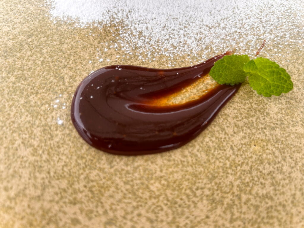 生キャラメルソースは火加減の絶妙さを感じます。苦みはなく、ほどよく焦げた風味がフルーツパイの甘みを引き立ててくれます。固すぎず、柔らかすぎずのソースはなめらかに馴染みます。