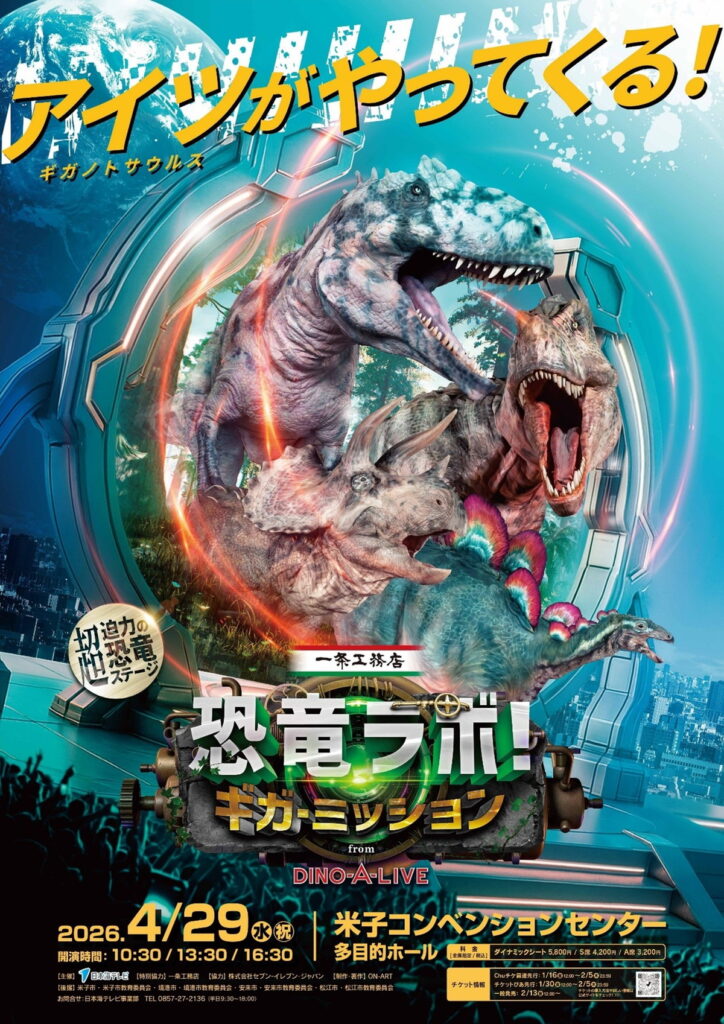 全国で話題沸騰中の体験型恐竜ショー『恐竜ラボ!ギガ・ミッション』がついに2026年4月鳥取で開催されます!