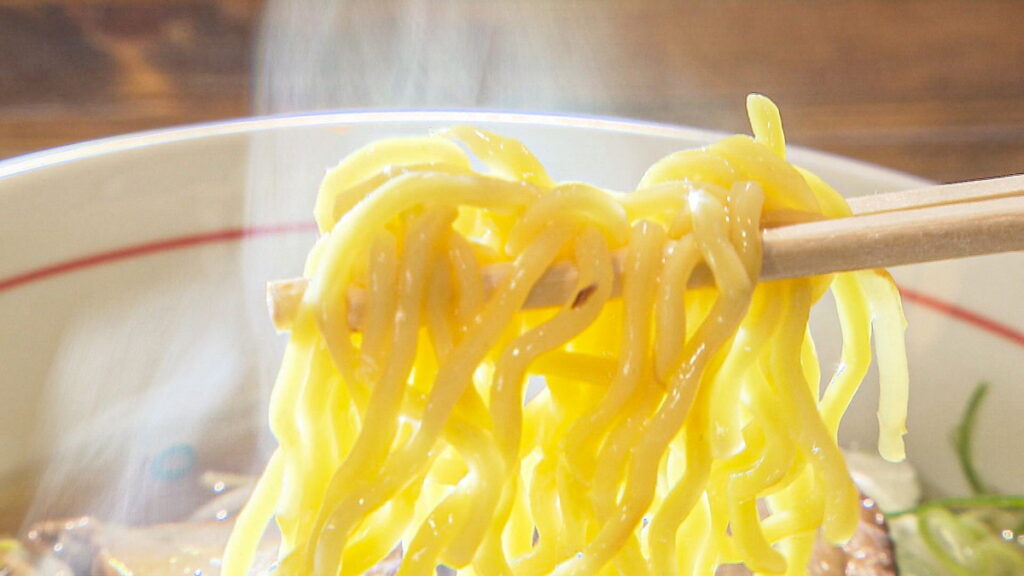 中太のちぢれ麵がスープに絡み合い、もうこれは絶品です。