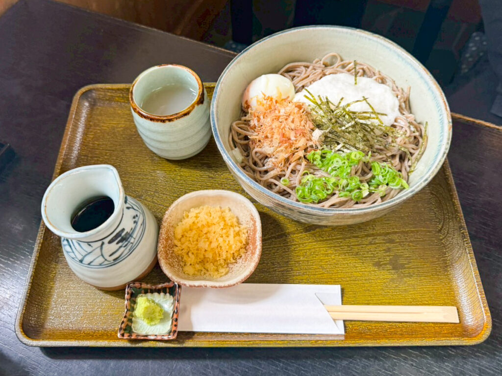 とろろと温泉卵の組み合わせが絶妙で、まろやかさとさっぱり感を同時に味わえる一品。食欲が落ちがちな時でもするすると食べられるお蕎麦です。