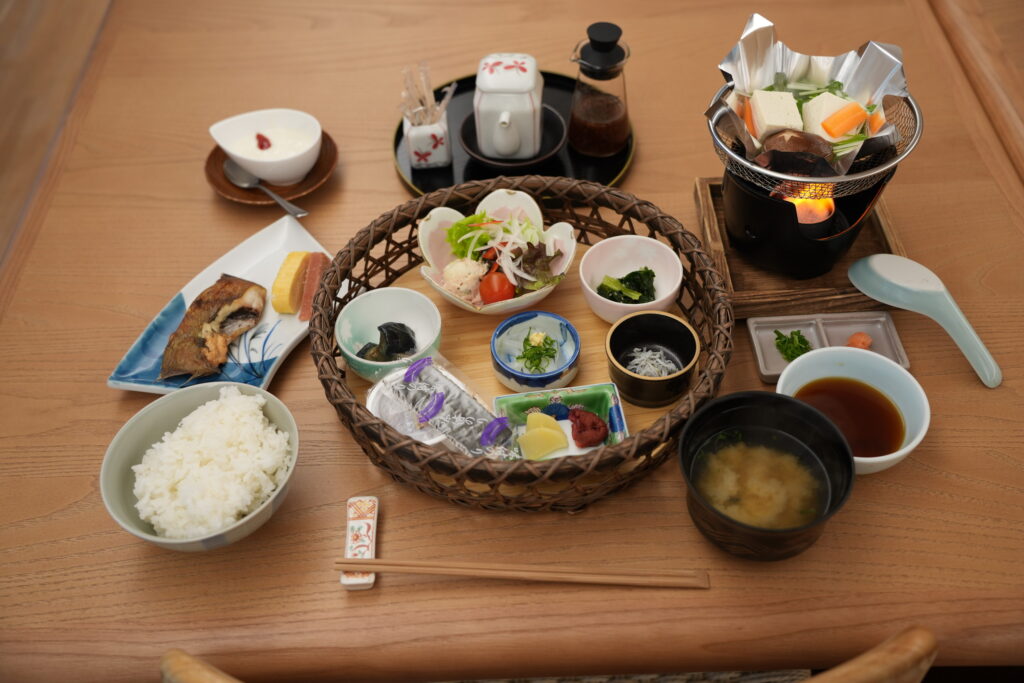 浜田市の金城(かなぎ)産きぬむすめのお米はおかわり自由で、少しずつ色々なおかずが食べられるのが嬉しい内容でした。