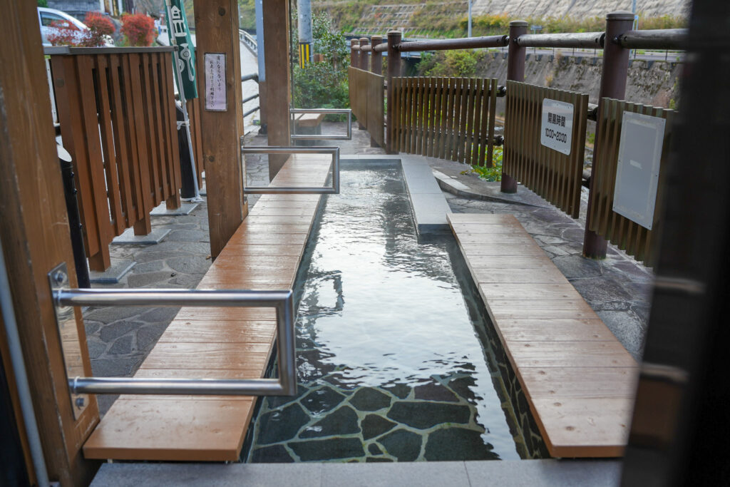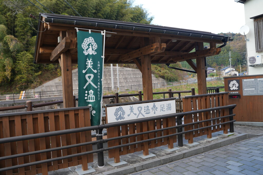 まず気軽に美又温泉の泉質を試せるのが、温泉街入口にある 無料の足湯。