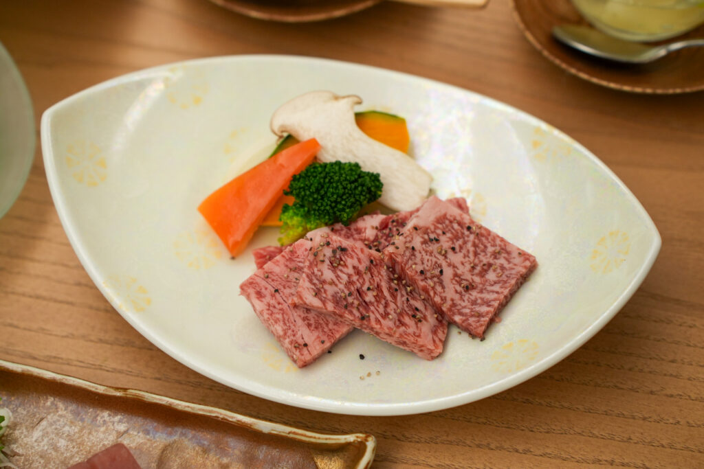 石見和牛は年間200頭ほどしか出荷されない貴重なお肉で、サシの入り方が絶妙。とろけるのに脂がしつこくない上品な味わいでした。