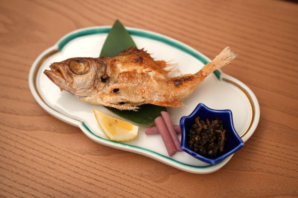 のどぐろは焼き魚で登場。皮はパリッと香ばしく、中はふんわり。
