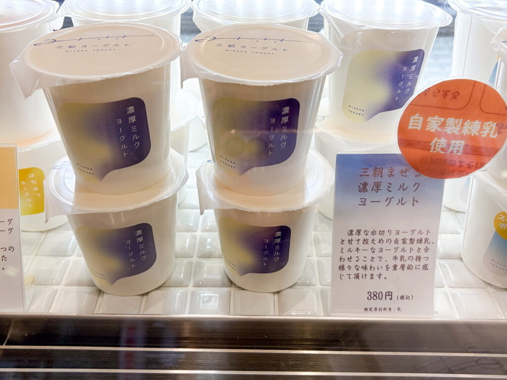 練乳好きの私(しばちゃん)が気になったのは三朝まぜる濃厚ミルクヨーグルト(380円)。自家製の練乳を使っているそうです。