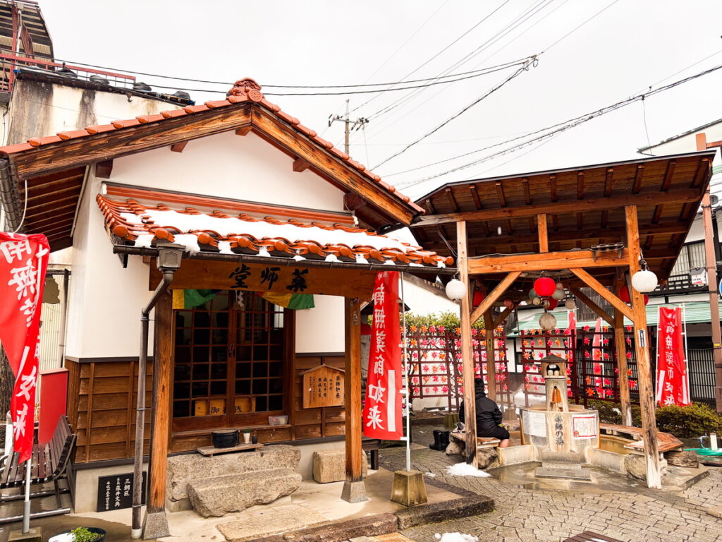 この足湯がある薬師堂は足腰強健や健康長寿のパワースポットとして知られています。