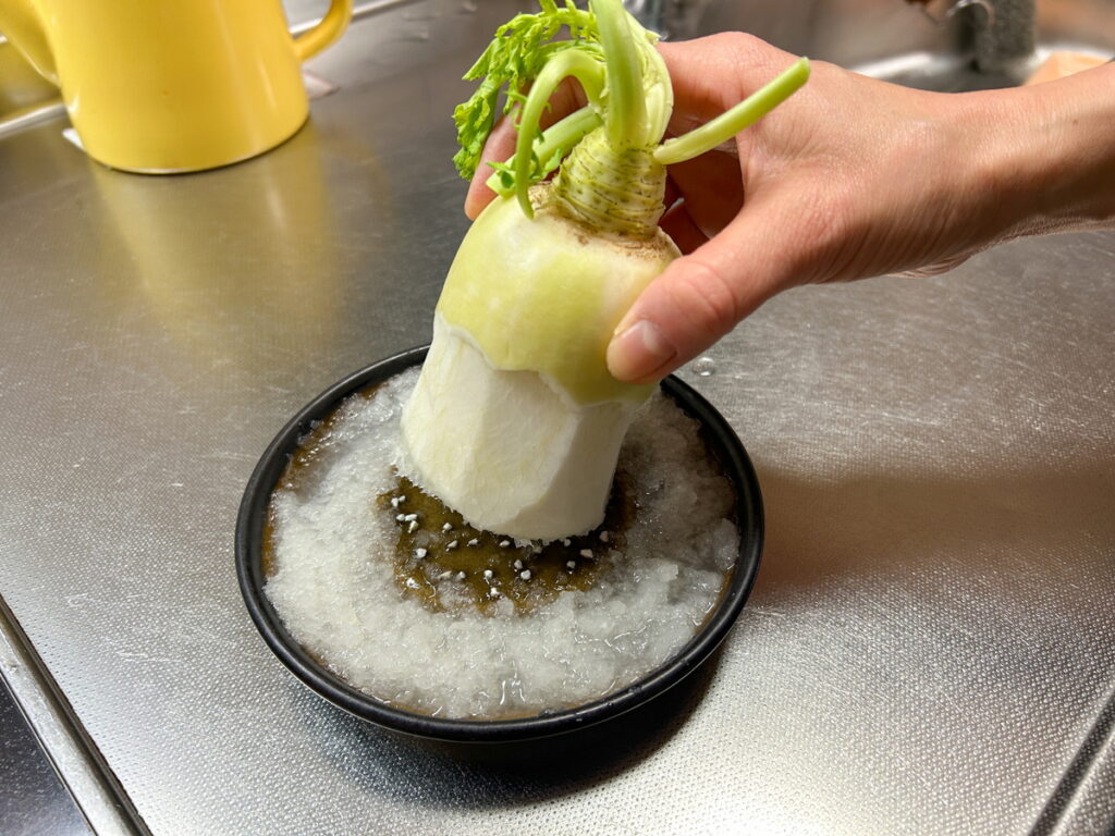 また、大根を擦ったまま、この器のまま食卓に出せるので、他の器に移し替える手間もなく、洗い物も減らせます。