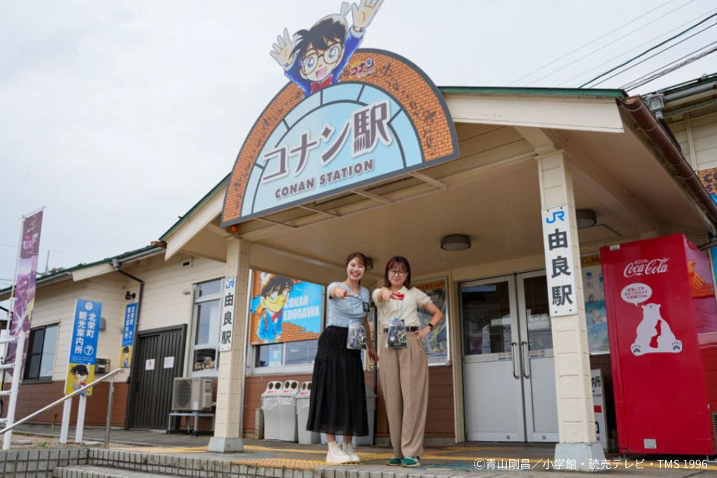 由良駅(通称「コナン駅」)に到着すると、駅からすでにコナンワールド全開!
