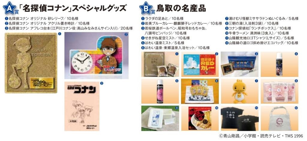 ツアーブックには名探偵コナンのオリジナルストーリーが収録。ストーリーをもとに鳥取県内のスポットを巡って、事件の手がかりを集めていきます!そして、真犯人を突き止めた方には…抽選で素敵なプレゼントも!