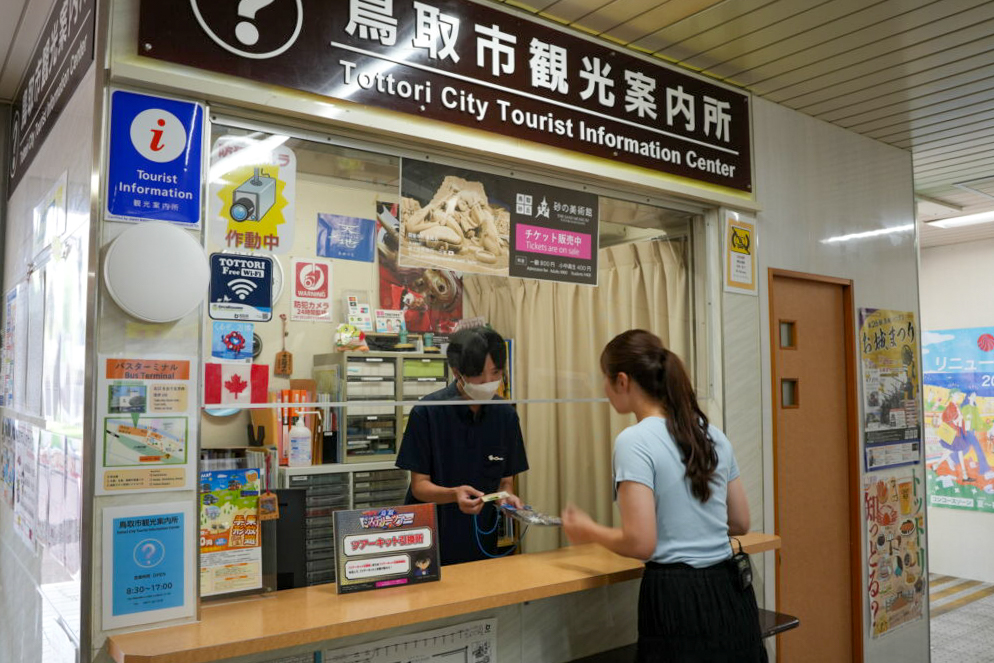私たちは鳥取駅構内にある鳥取市観光案内所でツアーキットを受け取りました!