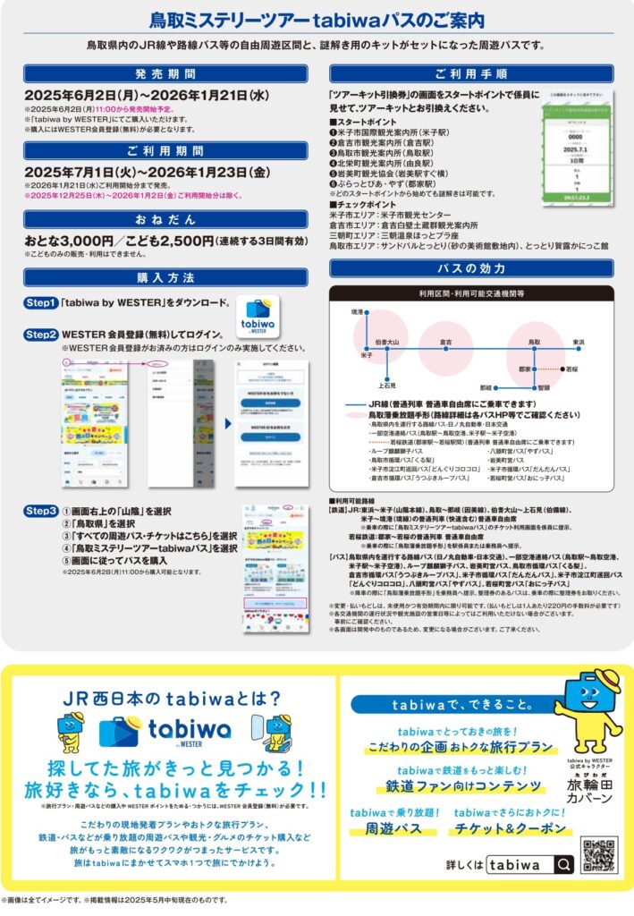まずは、WEBで「鳥取ミステリーツアー tabiwaパス」を購入!