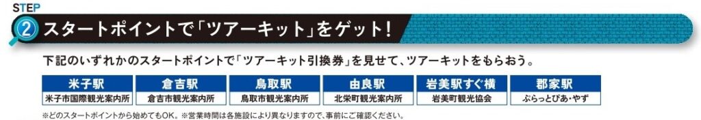 スタート地点は、鳥取県内6か所から選べます。