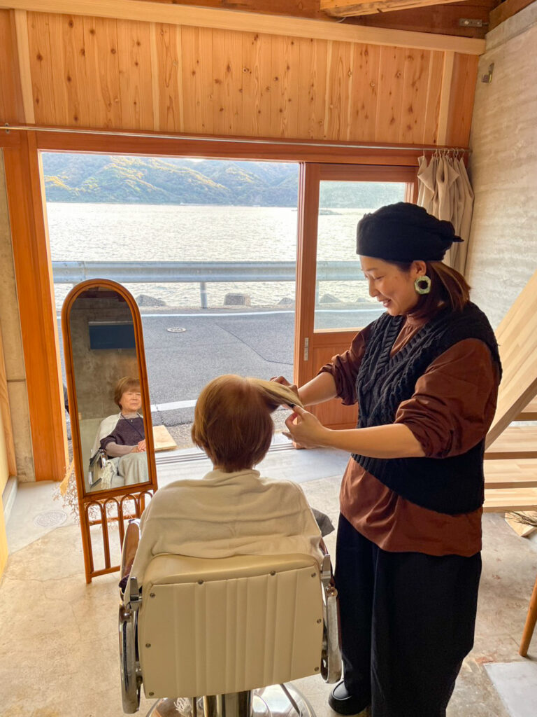 十六島には美容室がなく、なかなか美容室に行けない年配の方などのために、元々は集会所で出張美容室をしておられました。