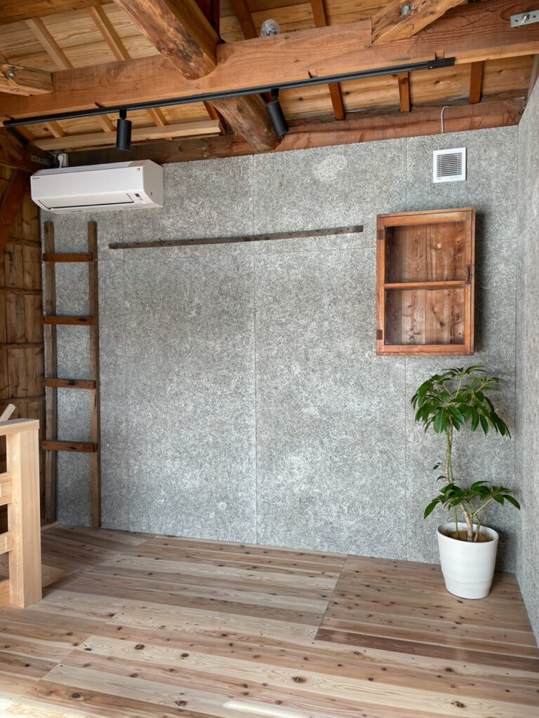 今までとこれからが繋がるような空間にして、2階にはここにあった梯子や壁掛け棚などを取り付けて展示。