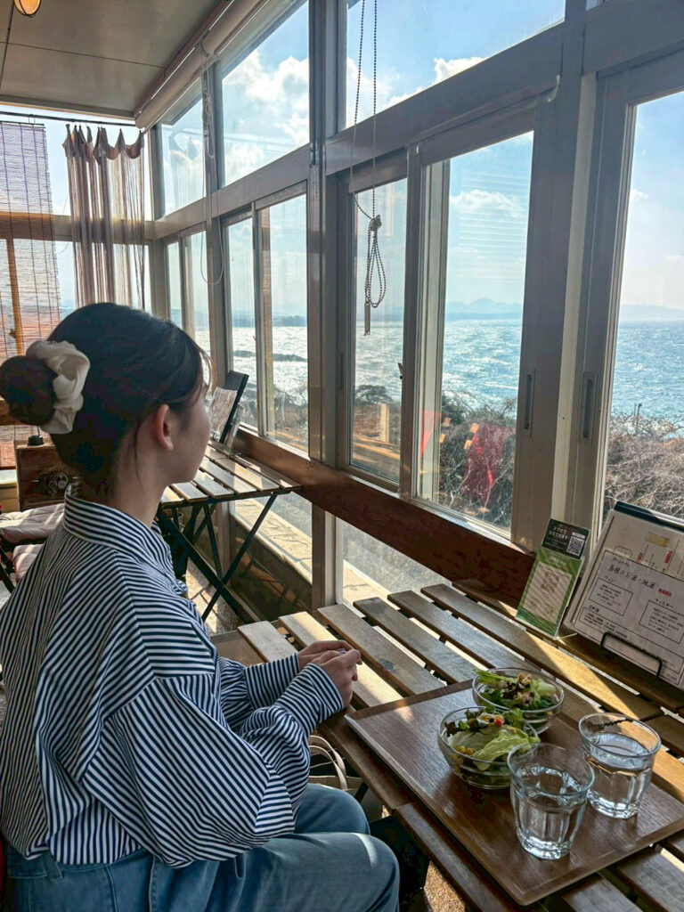 店内は広々としていて、海を眺めながらゆったりと過ごせる雰囲気です。
