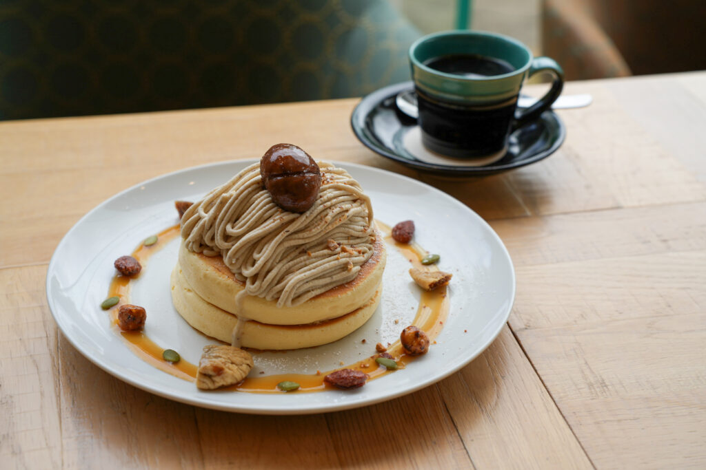せっかくなので、10月31日までの限定メニュー「モンブランパンケーキ」も注文。
