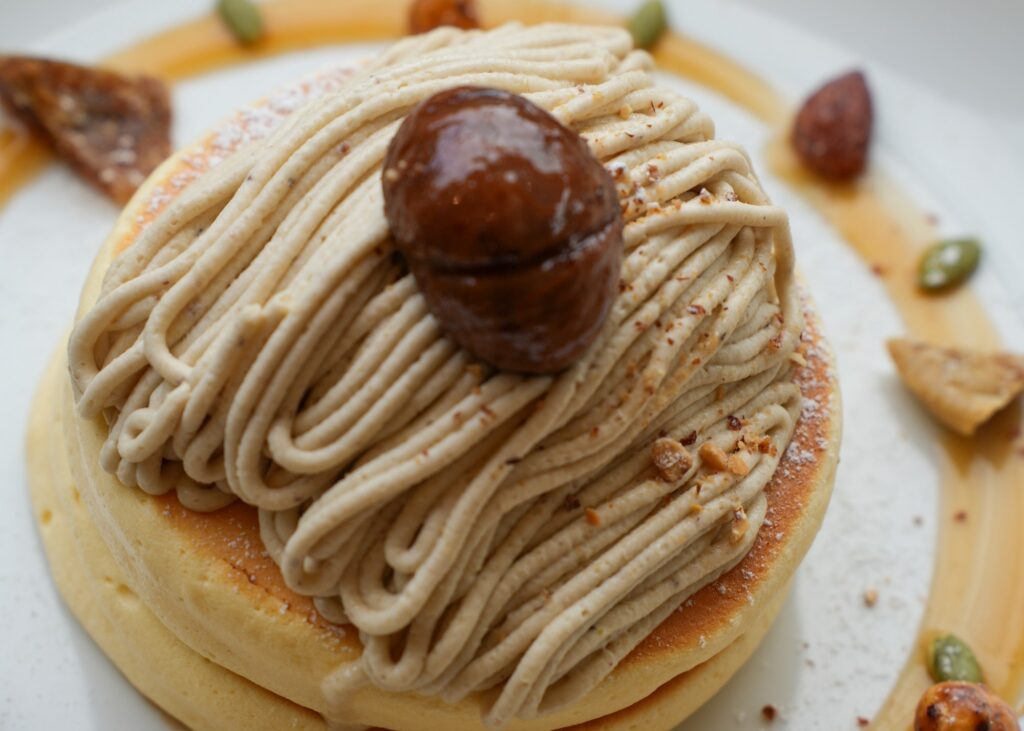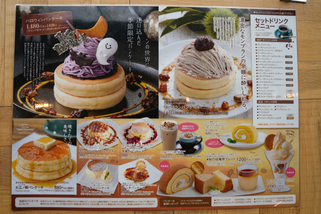 ほかにも、季節ごとに登場する期間限定のパンケーキもあり、これまでにいちごや桃、そして訪れたこの日はハロウィン仕様のパンケーキやモンブランパンケーキが登場していました!