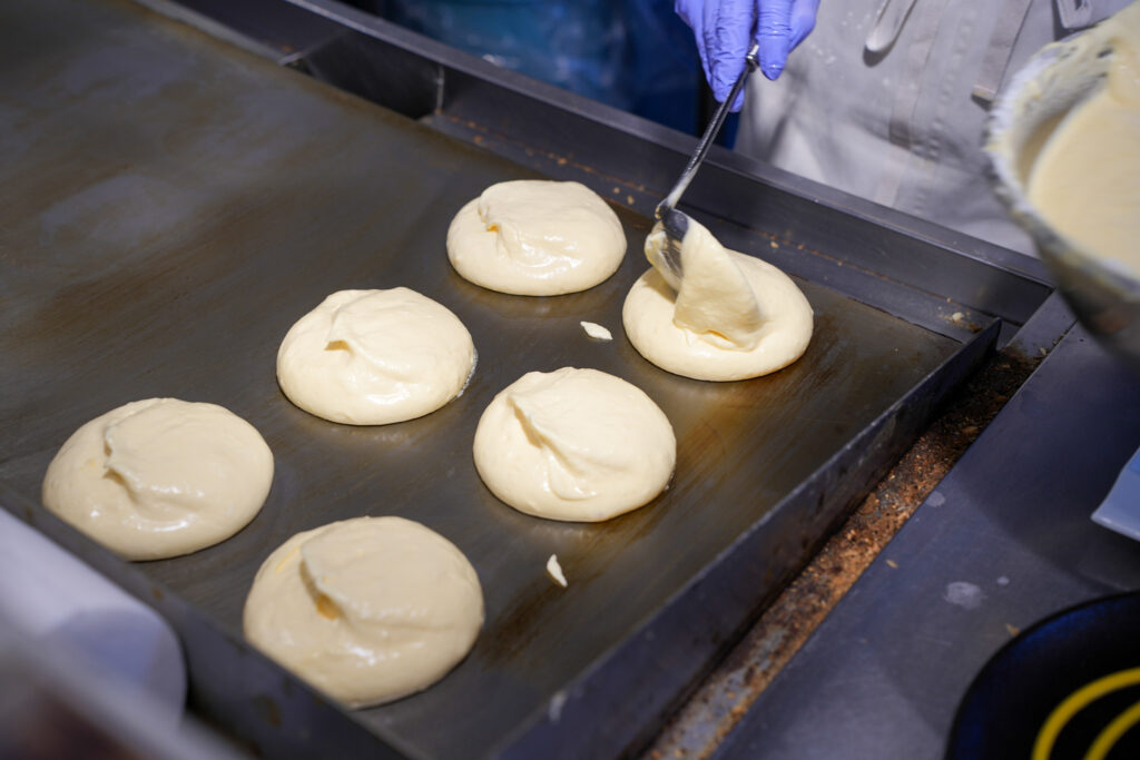 このパンケーキを焼けるのは、何度も研修を重ねたスタッフだけ!