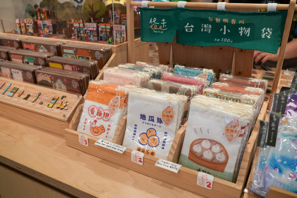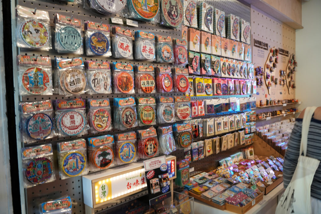タピオカや小籠包など、台湾らしいモチーフのバッジやキーホルダーがずらり!