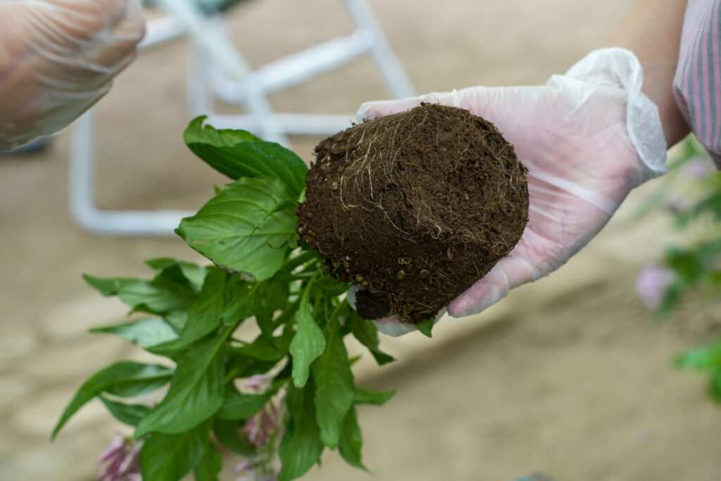 根がしっかり張っている苗は、軽くほぐしてから植え付けます。