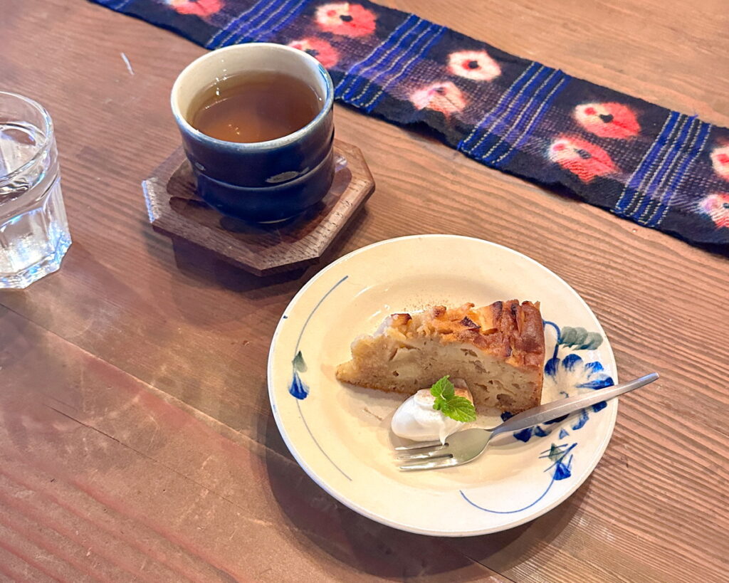 りんごのケーキと、宝仙茶(ほうせんちゃ)をいただきました。