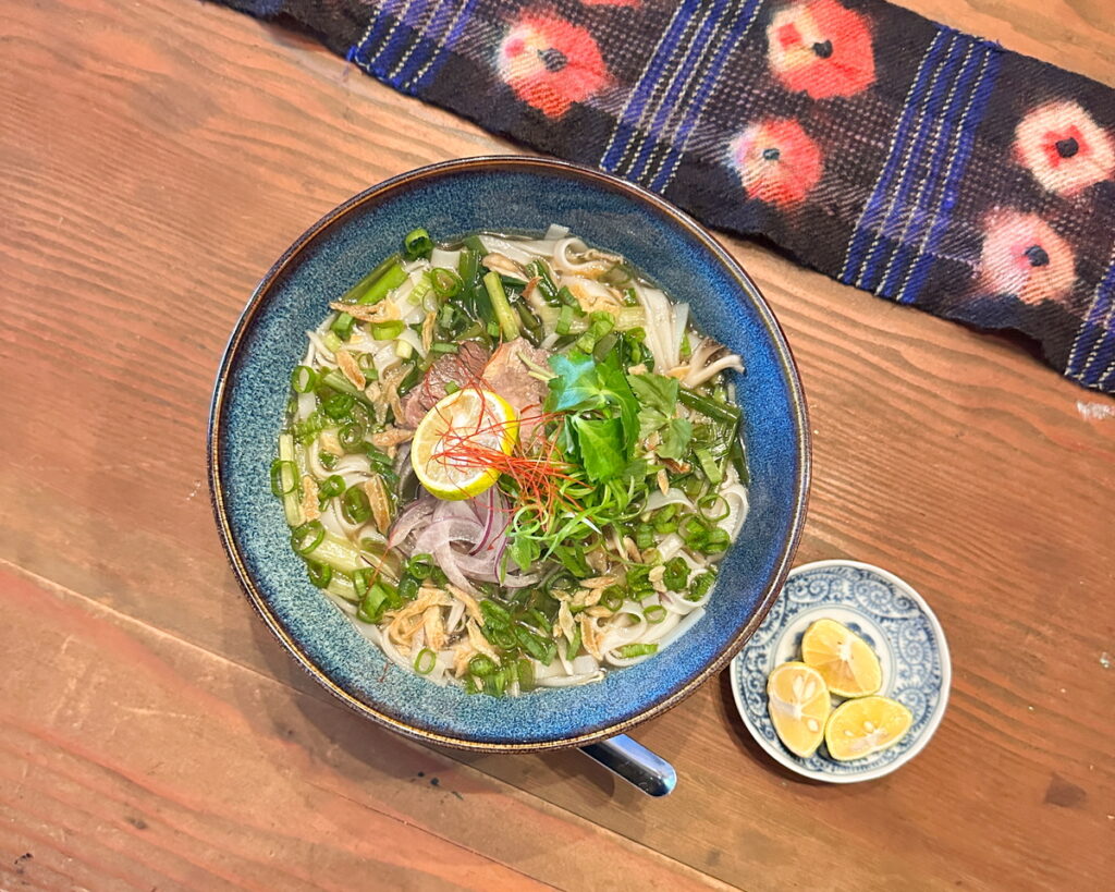 伝統的建造物群保存地区に位置するこの古民家を、ゲストハウスにするか、母の染色工房にするか、それとも飲食店にするか……と、いろいろと考えていた中で、ふと浮かんだのが『フォーのお店を開くこと』だったそうです。