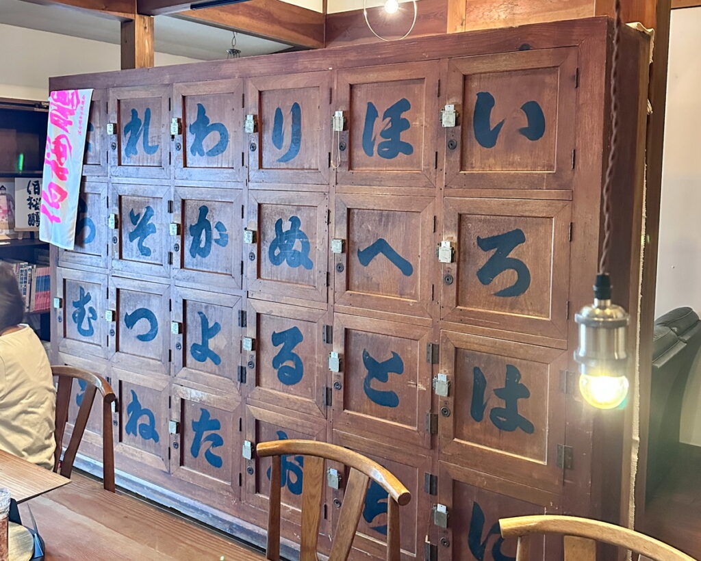 扉に描かれた「いろは歌」の文字が、ひときわ目を引きます。