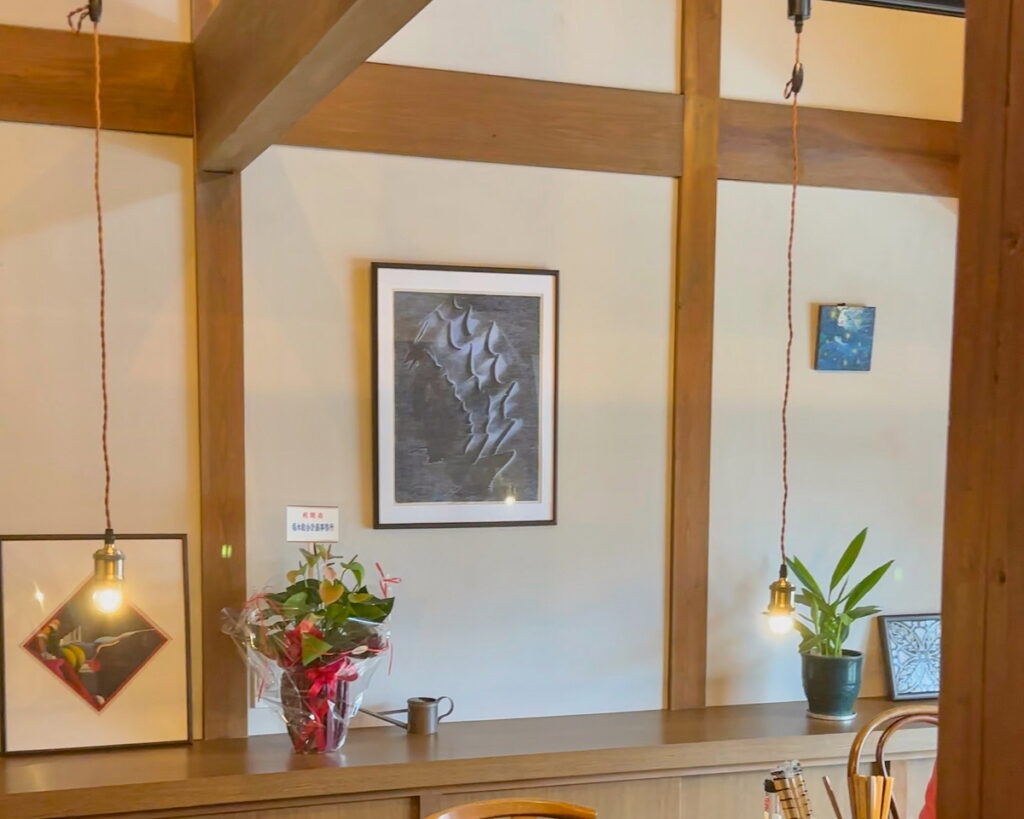 写真中央に飾られているのは、春佳さんのおじいさまで、板画家(版画家)の加納告保(かのうつぐやす)さんが手がけた作品です。