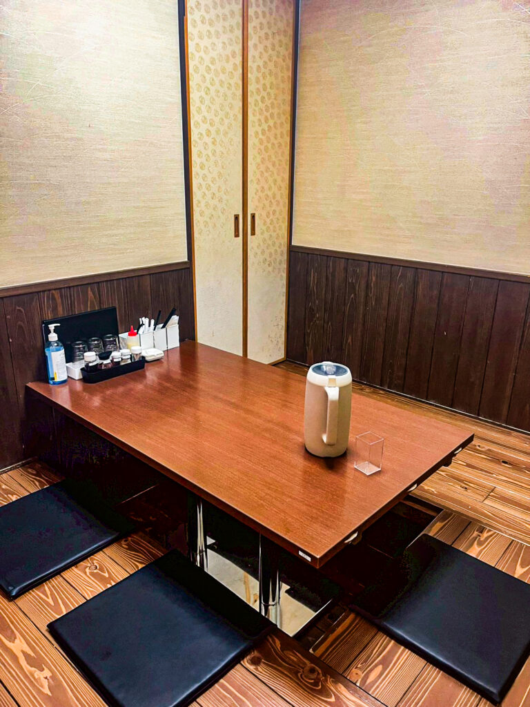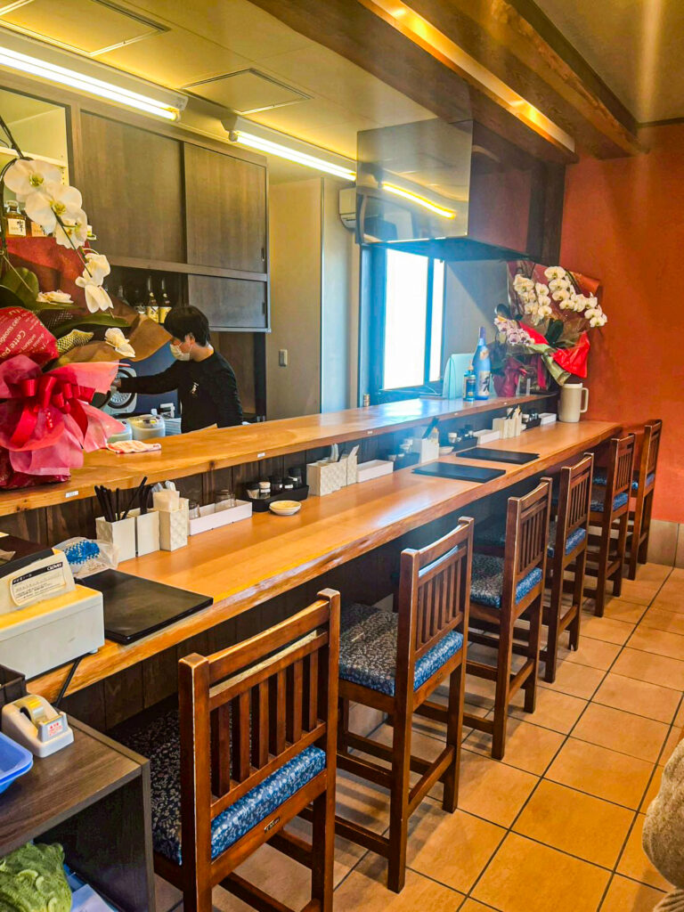 店内は、座敷が3席、カウンター6席、テーブル席が2つ。