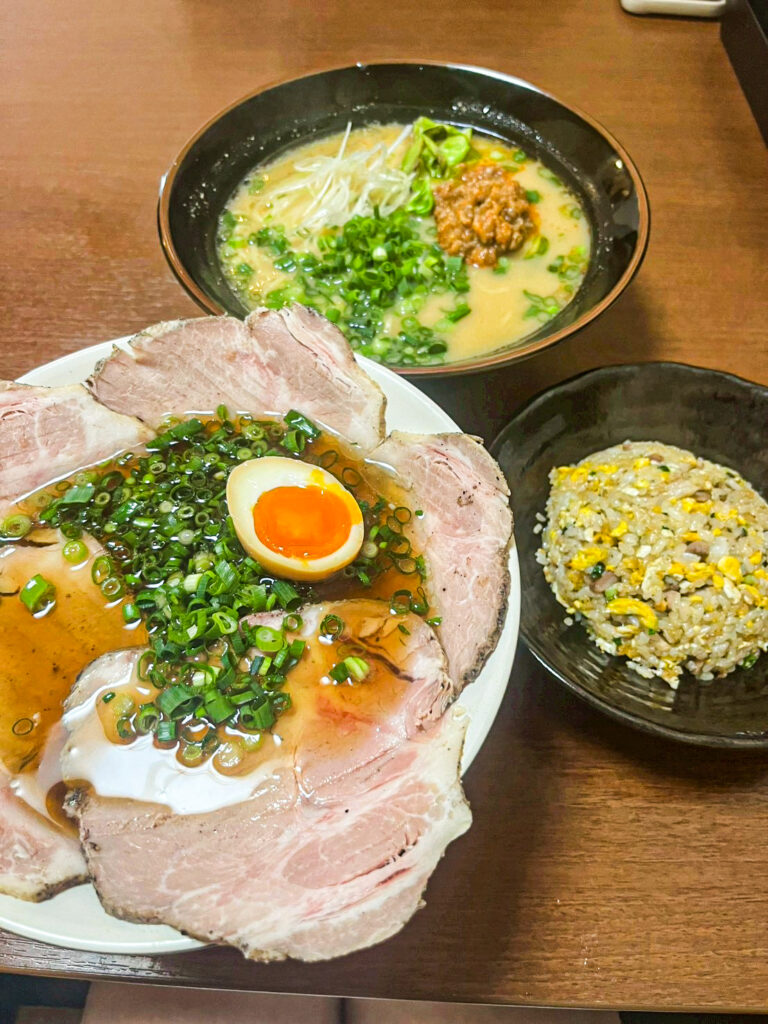 今回は、特製チャーシュー麺と半チャーハンセット、味噌ラーメンを注文しました。
