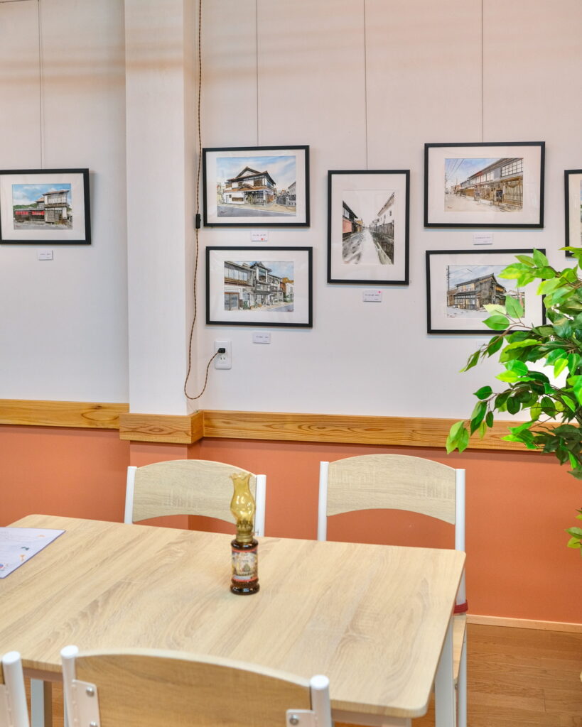 この日は店内で鳥取市の水彩画家、竹内ロウさんによる素敵な作品展も開催されていました。