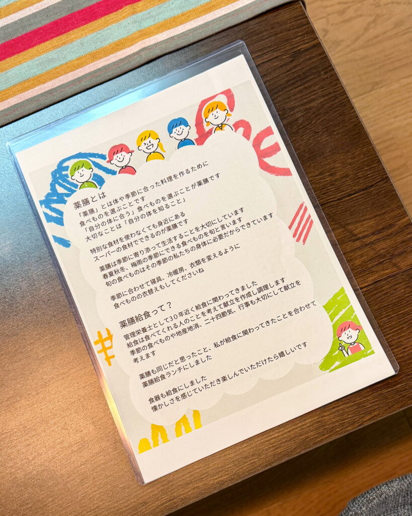 ランチを待っている間、テーブルに置かれていた「薬膳とは」と書かれた一枚の紙を読んでみました。