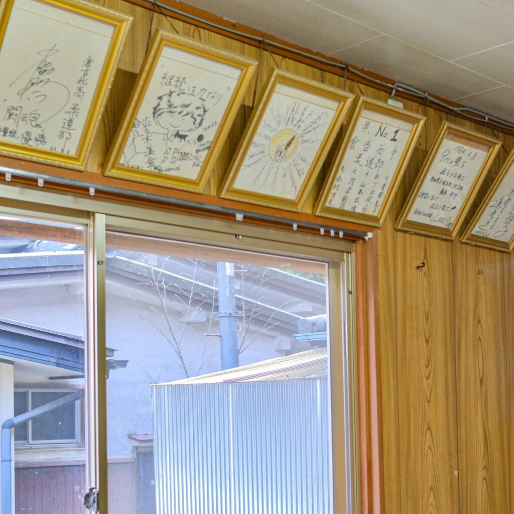 店内にはいくつものサインが飾られていました。谷口さんに尋ねたところ、ここは以前、別の方が飲食店を経営しており、当時倉吉市営陸上競技場へ競技のために来られた方達がここで食事をされた際に、お店の方が記念に書いてもらったサインのようです。