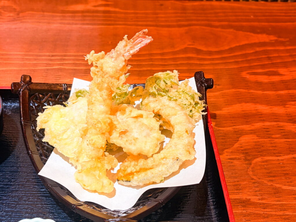 天ぷらはエビや鶏肉、かぼちゃなどです。