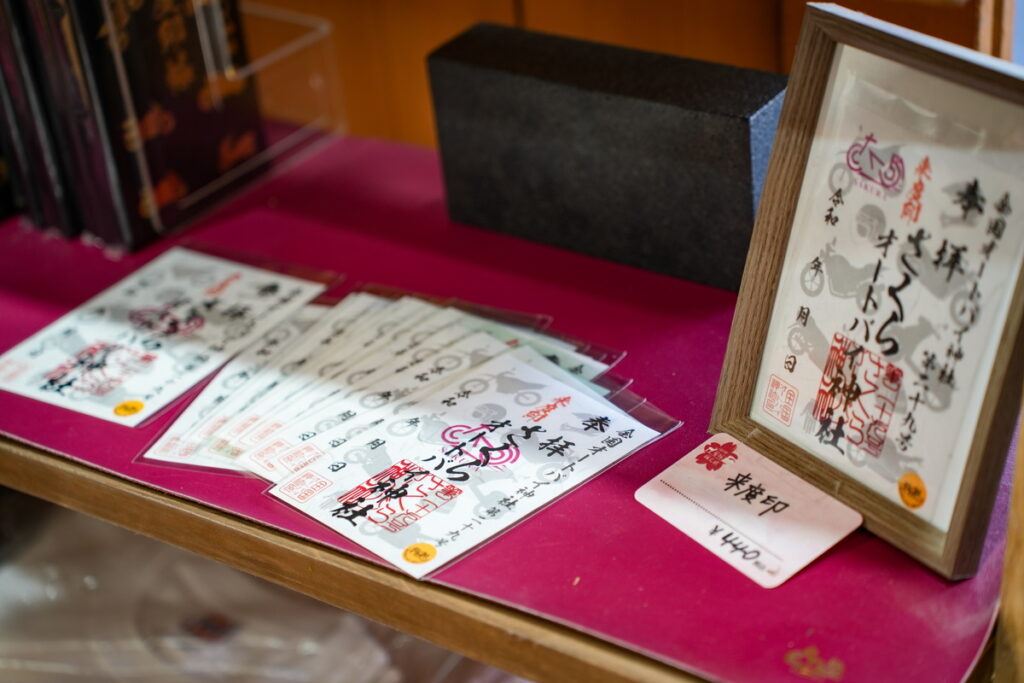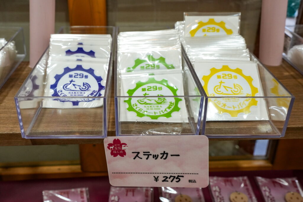 さくらオートバイ神社は道の駅の駐車場の一角にあるのですが、道の駅の売店で神社グッズを買うこともできます。