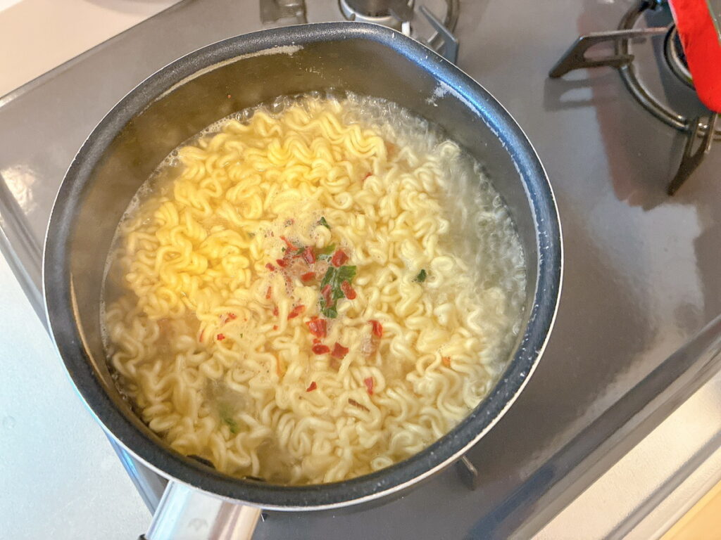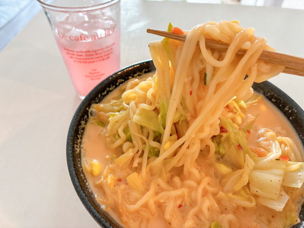 辛さの中にコクが加わって、いつもの辛ラーメンとは違う美味しさ。