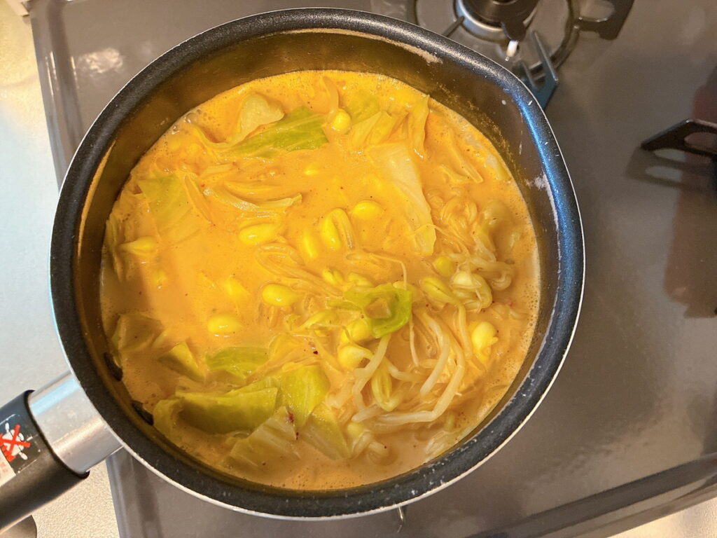 豆乳をいれたことでまろやかな甘みも出るのかな?と思いきや、普通に辛いです!