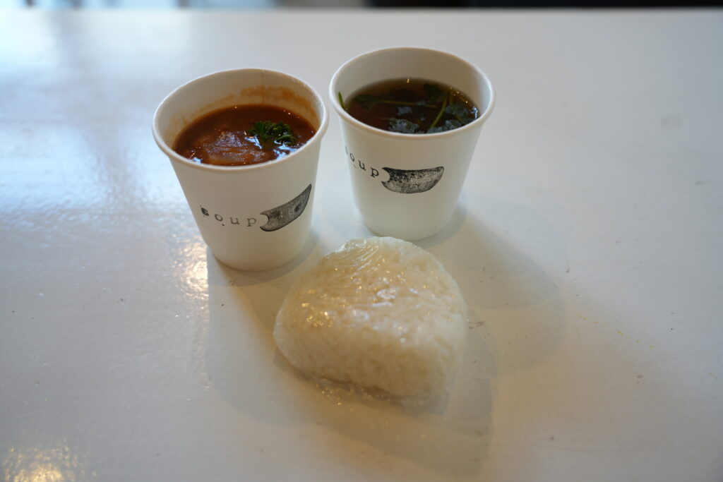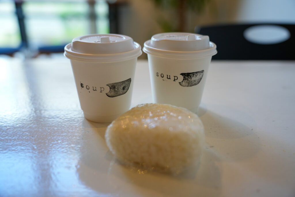 スープは紙カップに入っていて持ち帰りやすい仕様です。