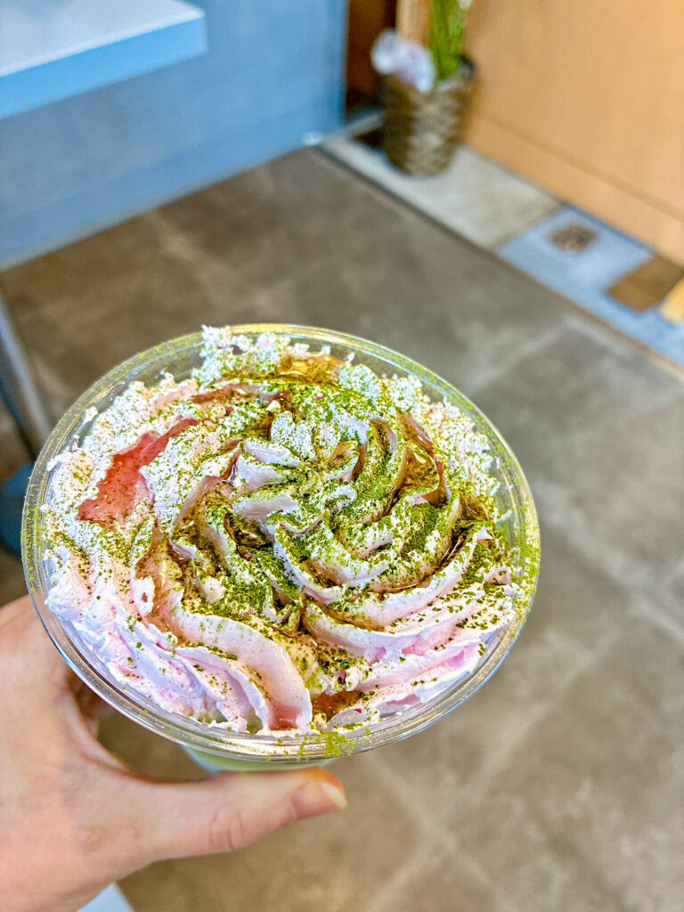 抹茶の緑と桜のピンクが見た目にも可愛くて、和スイーツ好きにはたまらない美味しさです♡