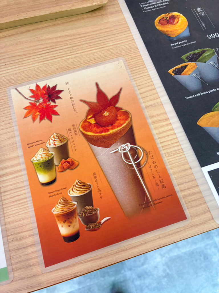 クレープに合わせてドリンク「黒蜜ほうじ茶ラテ」も登場。