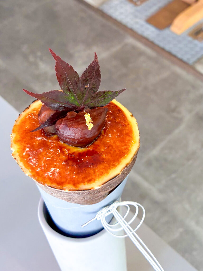 香り高いほうじ茶に栗の渋皮煮や甘露煮、りんごのコンポートなど秋の味覚がぎゅっと詰まったクレープです。