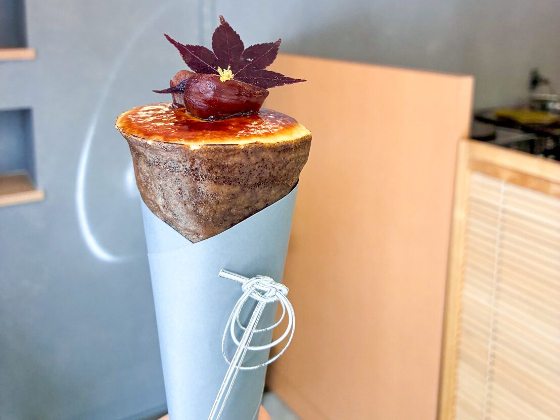 香り高いほうじ茶に栗の渋皮煮や甘露煮、りんごのコンポートなど秋の味覚がぎゅっと詰まったクレープです。