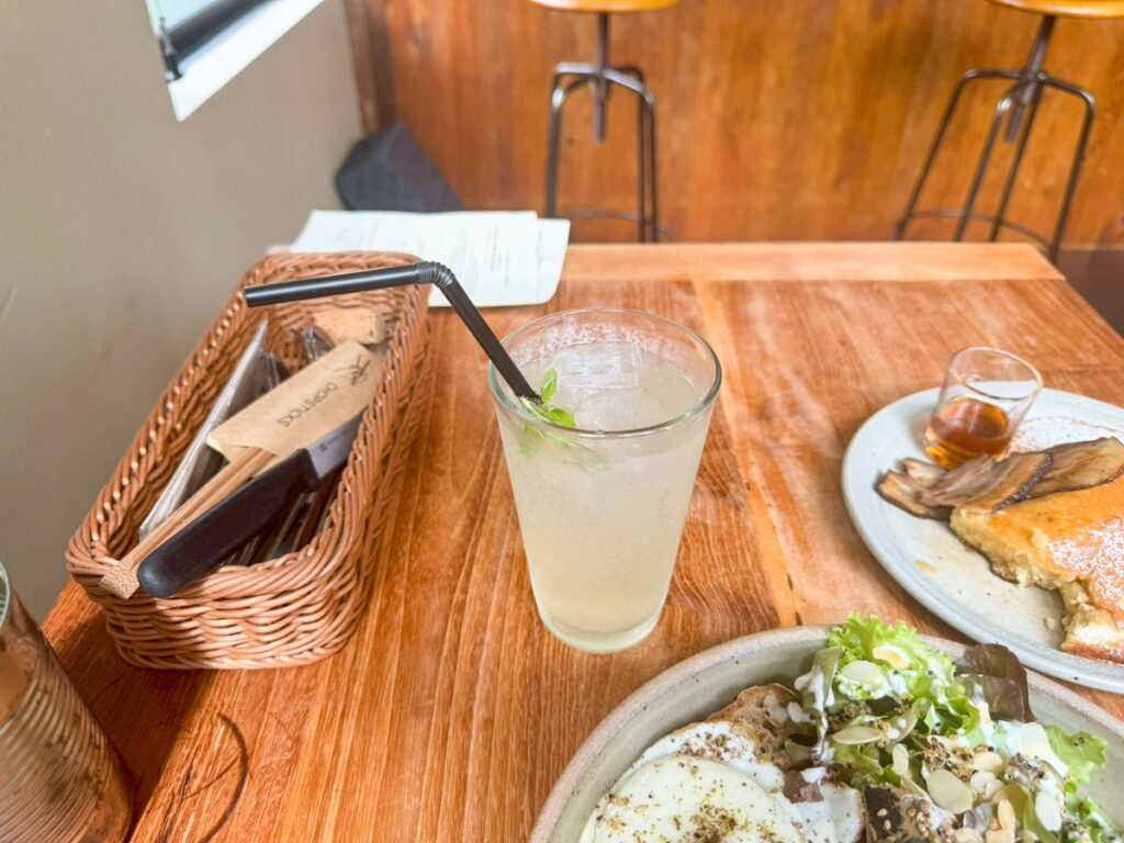 この日いただいたのは、tasteプレート(¥1,500)とバターミルクパンケーキ&自家製ベーコン(¥1,100)、そして自家製ジンジャーコーディアルソーダ(¥650)。