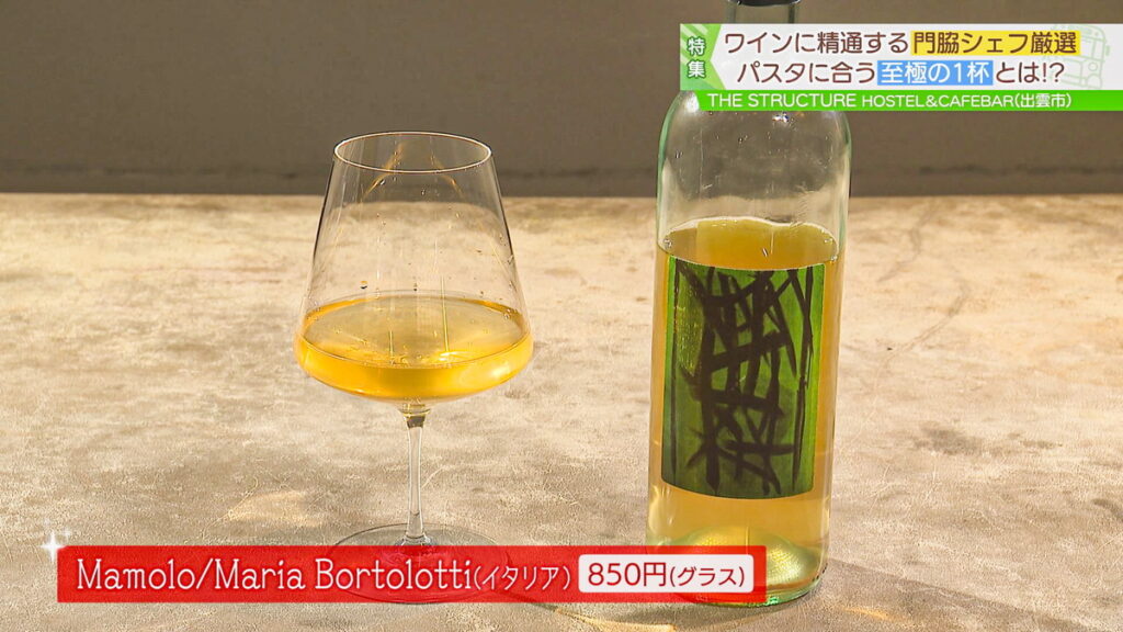 数々のワインを試飲して勉強してきたという門脇シェフが厳選した一杯は「Mamolo/Maria Bortolotti(イタリア) 850円(グラス)」。