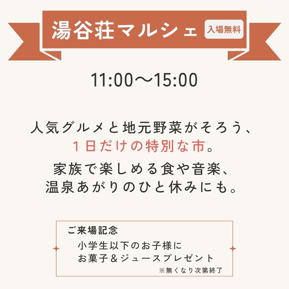 ・温泉のみのご利用は当日受付で可能/マルシェは入場無料。
