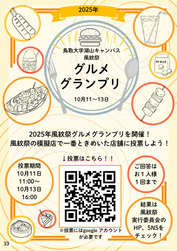 そんな鳥大の学園祭「風紋祭」が今年も10月11日から13日(月・祝)までの3日間開催されます。