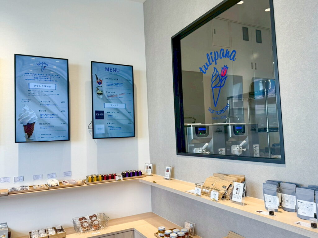 ソフトクリームを楽しんだあとに、地元の特産品やこだわりの商品をゆっくり見て回ることができます。