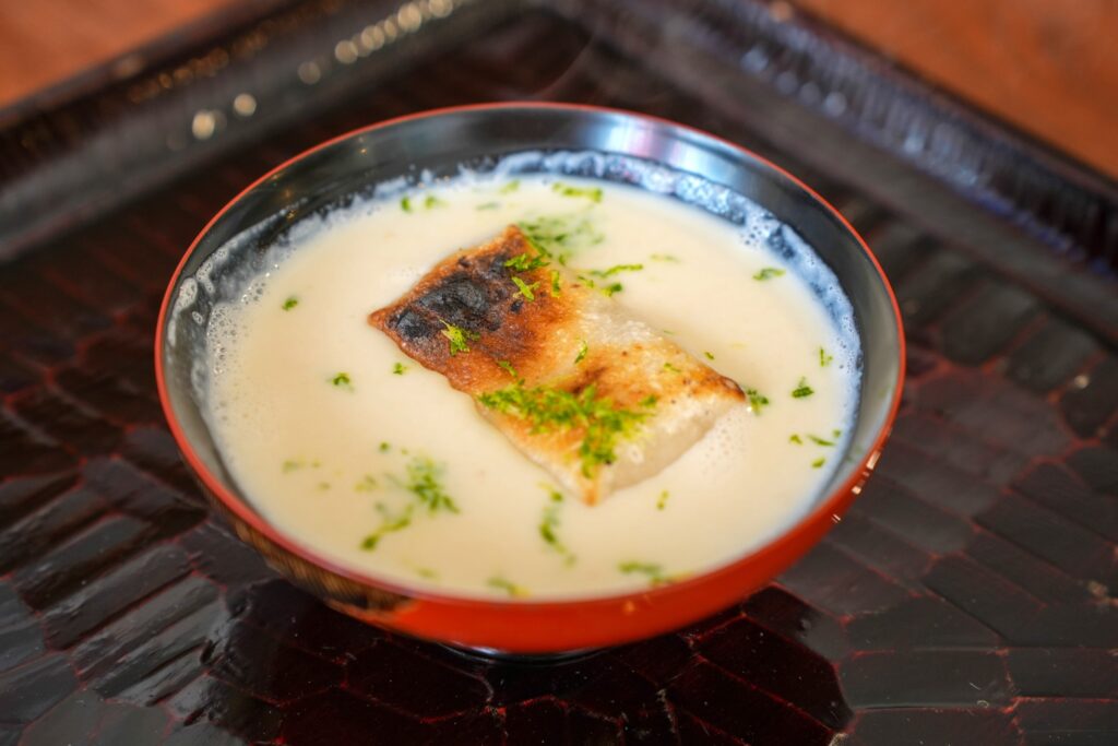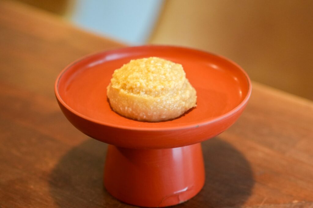 若桜町にある「藤原みそこうじ店」さんの貴重な白みそを使ったおしるこは、まろやかでやさしい味わい。