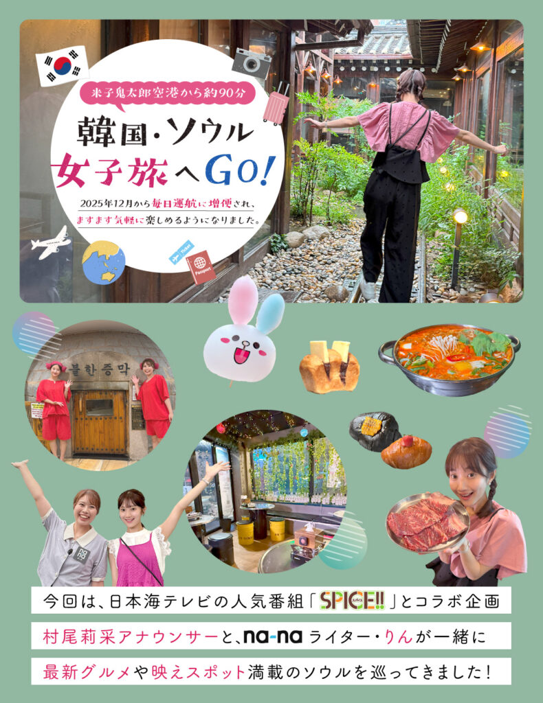 こんにちは!りんです!先日、日本海テレビの村尾アナウンサーと一緒に、韓国へ女子旅に行ってきました米子鬼太郎空港からなんとわずか90分でソウルまで行けちゃうんです!…