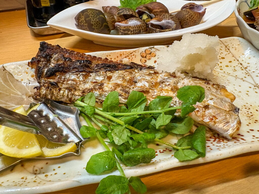 こりこりの歯ごたえがたまらない「本バイ貝」や脂がのった「たちうおの塩焼き」、新鮮で肉厚な「アジの刺身」など、新鮮な海鮮料理の数々…!